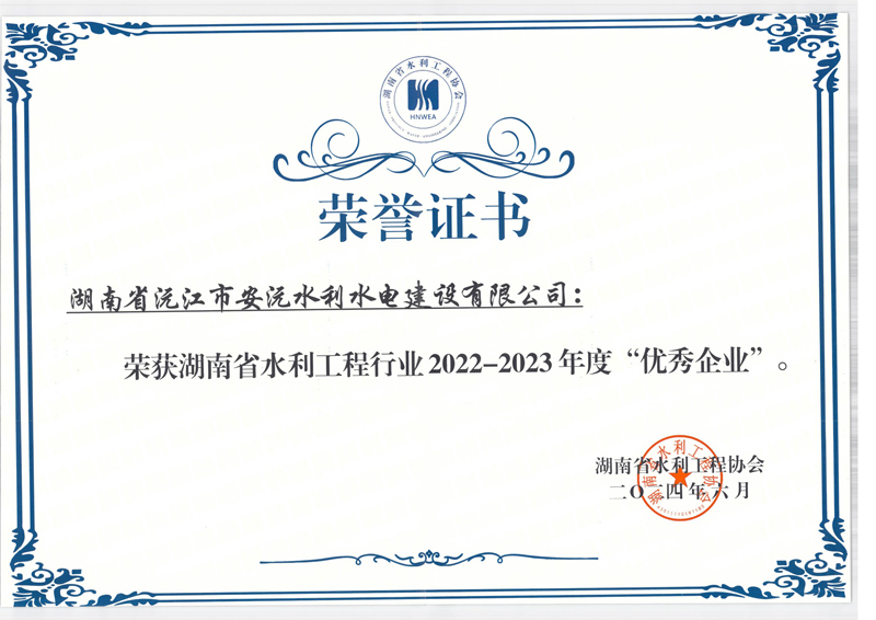 • 2024-06-29 安沅公司榮獲湖南省水利工程行業“優秀企業